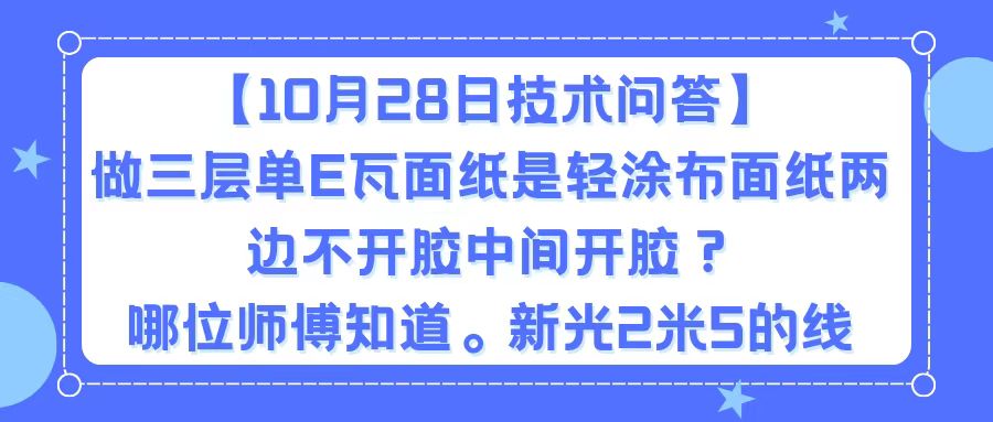 做三层单E瓦面纸是轻涂布面纸两边不开胶中间开胶。哪位师傅知道。新光2米5的线。